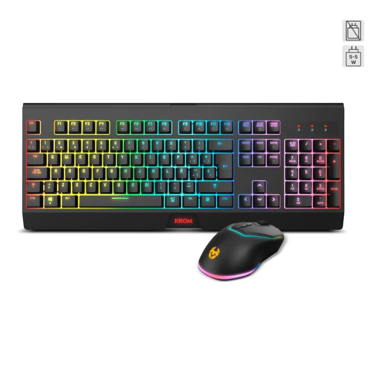 Krom Kabala Pack Gaming Inalámbrico RGB Teclado de Membrana + Ratón Óptico 4000 DPI Negros